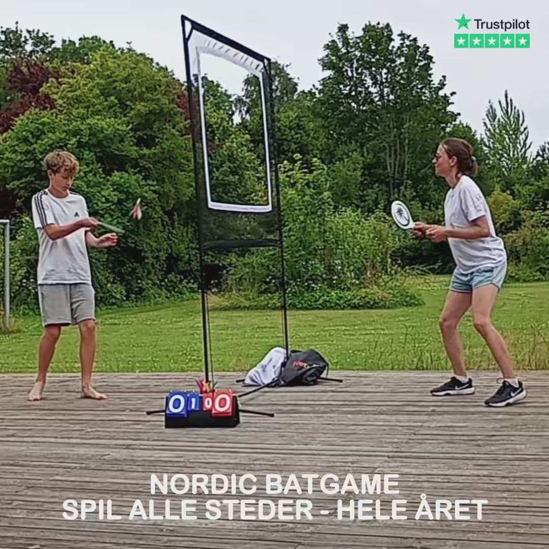 Nordic Batgame Original is a complete set for playing all year round. Danish assembly instructions and game rules are included so the game can be started quickly in a few minutes. The set includes 2 nice bats, 10 shuttlecocks, and 2 rubber balls in a gear bag. As well as an equipment and transport bag with white net, metal frame, and scoreboard, so you can easily take it with you to the garden, park, or summer house. Everything is packed and shipped from the warehouse in Stavnsholt to your nearest parcel shop.