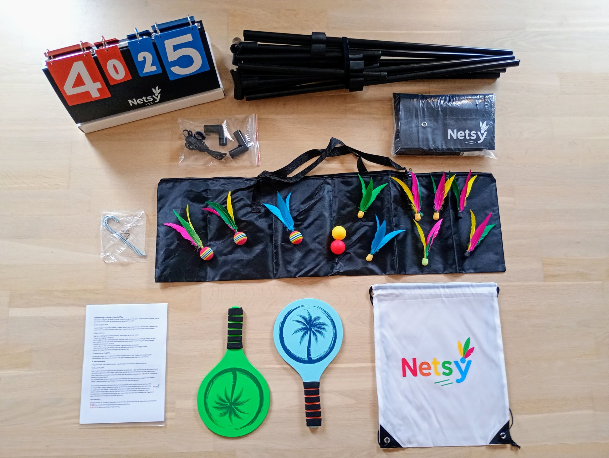 Nordic Batgame ist von Beach-Tennis, Badminton, Pickleball und Tischtennis inspiriert und bietet dennoch ein völlig neues Spielerlebnis. Mit dem Original-Spielset können Freunde und Familie viele unterhaltsame Stunden zusammen verbringen. Im Set enthalten sind 2 hochwertige Schläger, 2 spezielle Gummibälle und 10 Federbälle in einer praktischen Tasche. Außerdem gehören das weiße Netz im dänischen Design, der Metallrahmen, die Anzeigetafel, Heringe zum Windschutz, eine dänische Aufbauanleitung und die offiziellen Spielregeln zum Set. So haben Sie Zugriff auf alle unsere Spiele und das Spielset ist komplett! Alles lässt sich sicher und einfach in der mitgelieferten Aufbewahrungs- und Transporttasche verstauen. Die vollständige Ausrüstungsliste finden Sie unten.